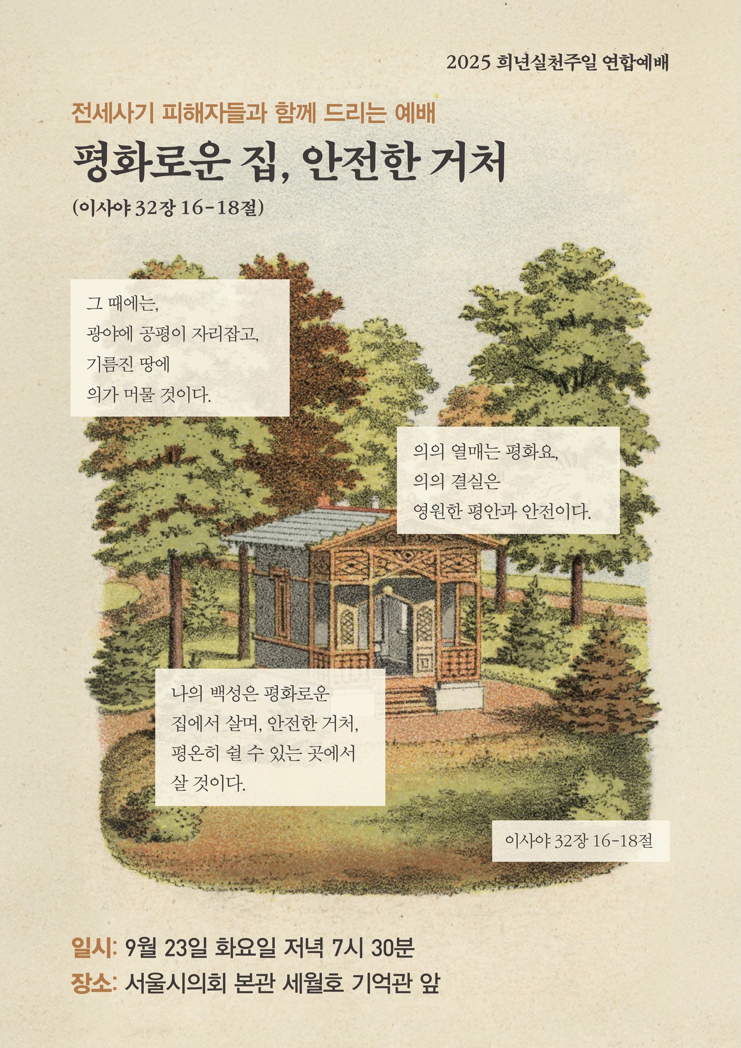 [연대] 전세사기 피해자들과 함께 드리는 예배 ‘평화로운 집, 안전한 거처’ (사 32:16–18)
