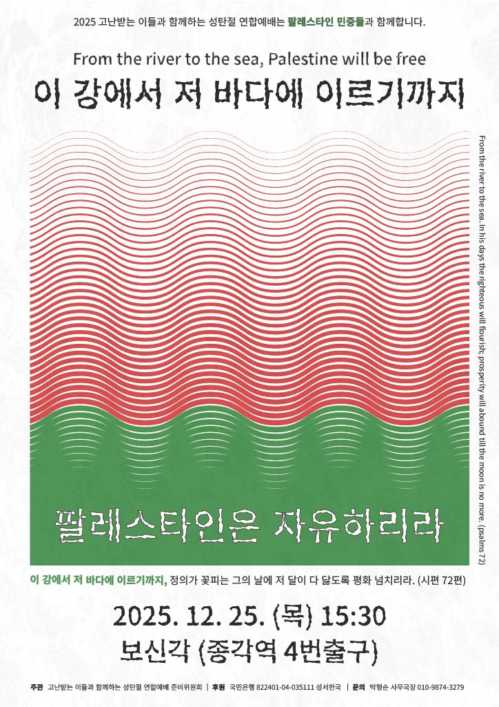 [고난받는 이들과 연대하는 2025 성탄 연합예배] 강에서 바다까지, 팔레스타인은 자유로워질 것이다
