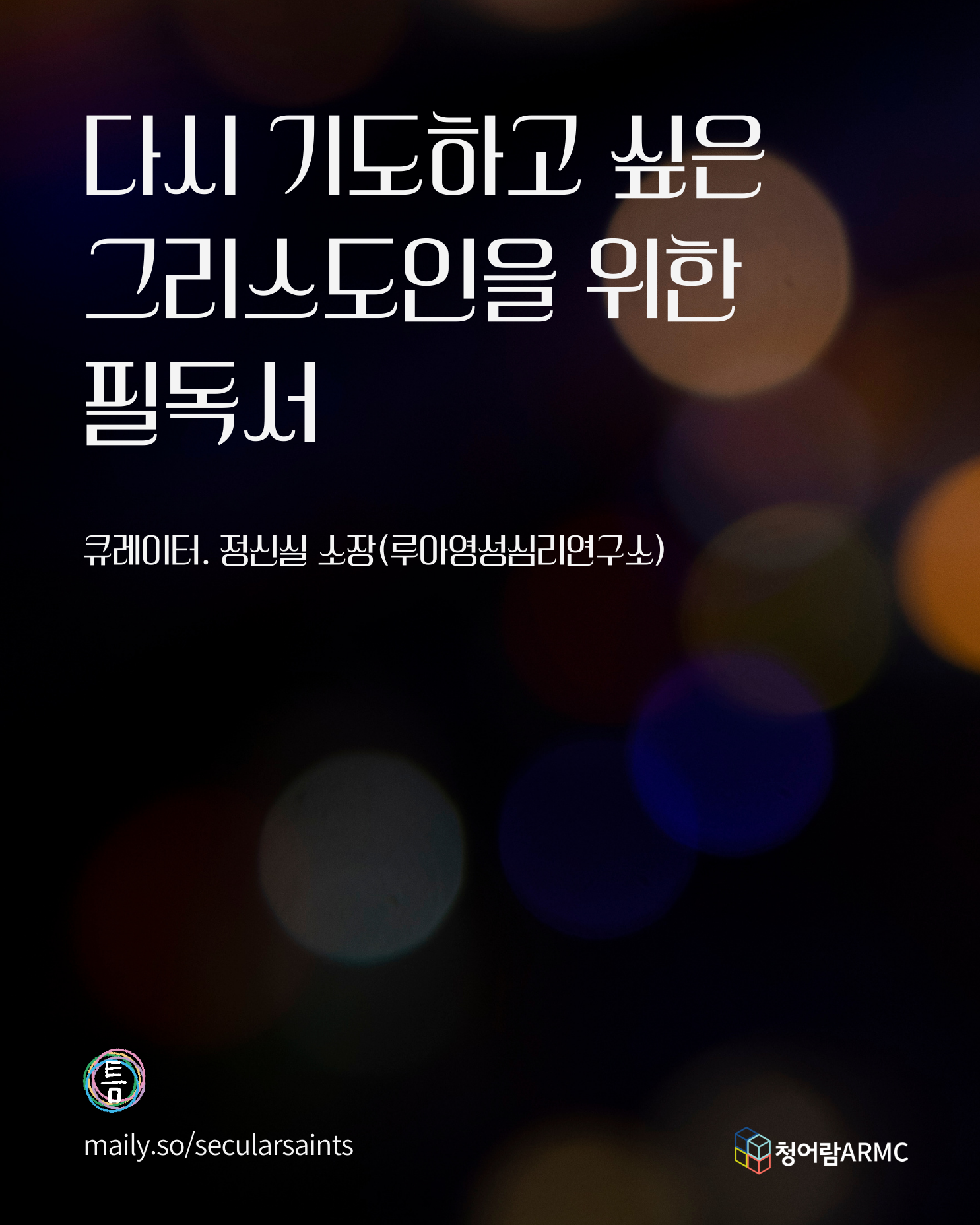 [세속성자 주일모임] 예배를 찾는 모든 이들을 위한 예배모임 신앙과 일상의 경계에서 고민하는, 주일에 교회에 가지 않는, 의심하고 회의하고 질문하는, 어느새 신앙이 웃자라버린, 교회에서 떠밀려 나온, 교회를 향한 사랑과 미움 사이에서 서성이는, 하지만 계속 걸어가고 싶은, 모든 이들 오세요.