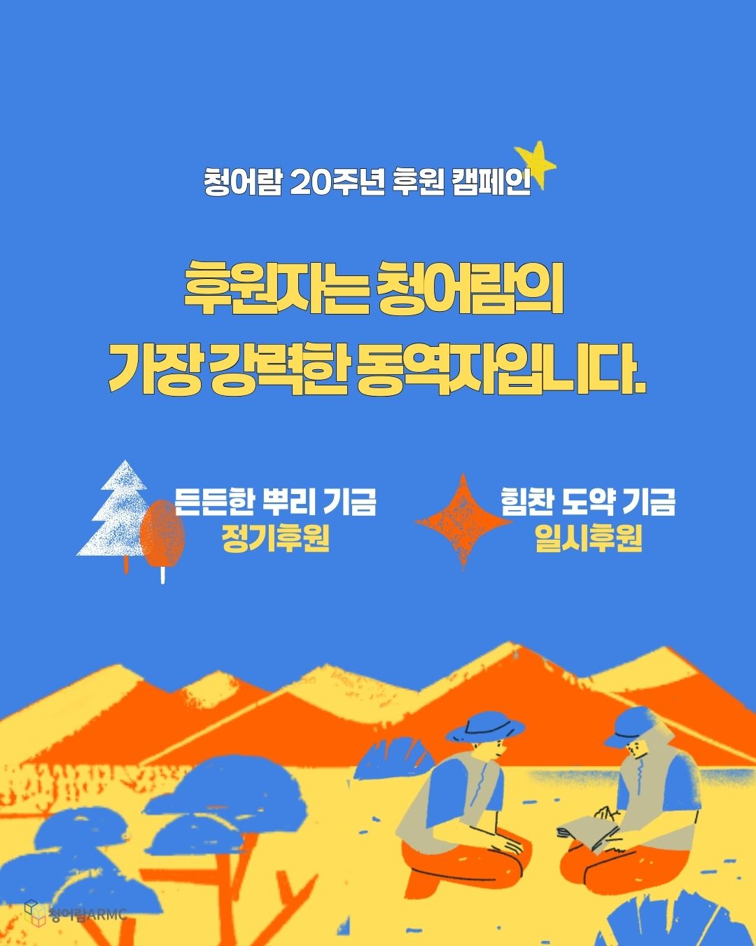 한 분 한 분이 '맞지 않는 계산으로' 내어주신 곁이 모여 청어람이 여기까지 올 수 있었습니다. 감히 감사한 마음을 전해봅니다. 후원의 날은 마쳤지만, 아직 닿지 못한 '곁'을 더 만나기 위해 청어람의 '20주년 후원 캠페인'은 계속 진행됩니다. 다채로운 존재가 편하게 숨 쉴만한 기독교 생태계를 꿈꾸며, 청어람의 결과 곁을 소개할 분이 있다면 꼭 알려주시고 함께 해 주세요. 청어람의 동역자, 친구가 되어주실 분들을 오늘도(내일도) 기다리겠습니다. 😉